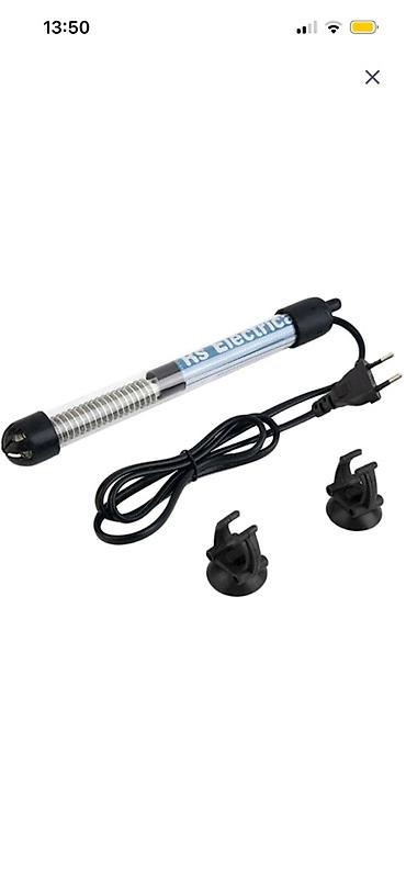 - Su qızdırıcısı: Şüşə korpuslu, spiral istilik elementi ilə. 220V şəbəkəyə qoşulur, Avropa tipli fiş. Suya tam batırılan tip. Akvaryuma bərkidilməsi üçün 2 ədəd vakuumlu oturacaq komplektdədir. Balıqlar üçün sabit temperatur saxlamağa kömək edir.