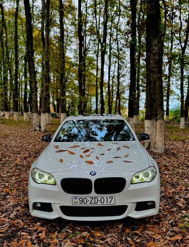 BMW 5 Series (F10) sedan – gümüş rəng. Texniki xüsusiyyətlər və təchizat: - Kuzov: 4 qapılı sedan, M Paket eksteryer (aqressiv bamperlər, geniş hava girişləri) - Rəng: gümüş - Təkərlər: iri ölçülü...