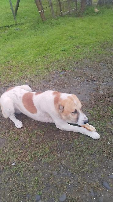 Cins: Orta Asiya çoban iti tipli (alabay tipajı) Yaş: balalıq dövrü Rəng: ağ-şabalıdı, üzündə tünd maska Zəncir və taxta darvaza daxmalı yerə öyrəşib Xüsusiyyətlər: - Həyətyanı sahə və fermalar üç...