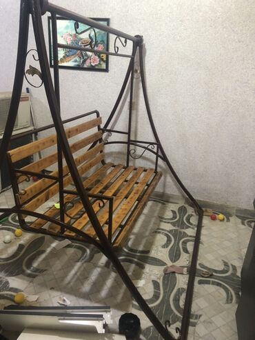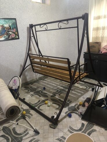 Bu dəmir konstruksiyalı yelləncək, istirahət üçün nəzərdə tutulmuş, açıq və ya qapalı məkanlarda istifadə edilə bilən rahat bir oturacaq təklif edir. Oturacaq hissəsi taxta lövhələrdən hazırlanıb, bu da ona təbii və estetik görünüş verir. Oturacaq və arxa hissəsinin dizaynı rahat oturma təmin edir. Dəmir çərçivə, yelləncəyin sabitliyini və davamlılığını təmin edir. Yelləncəyin yan tərəflərindəki bəzəkli detallar onun görünüşünə zəriflik qatır. Bu yelləncək ev, bağ, eyvan və ya digər istirahət zonaları üçün uyğundur.