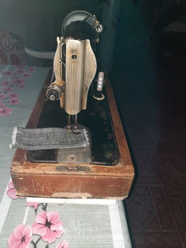 Razılaşma yolu ile .Tecili satılır Mexaniki tikiş maşını – əl qolu ilə işləyən klassik model - Korpus: qara metal gövdə, bədii qızılı naxışlarla bəzədilmiş platforma - Qidalanma: mexaniki; yan tər...