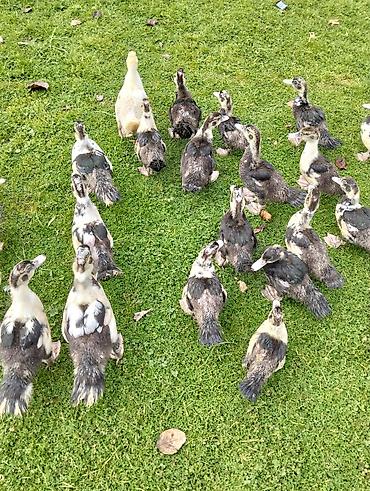 Məhsul: Ördəklər Təsvir: - Təsərrüfat üçün uyğun ev quşları. - Ağ rəngli ördəklər və qara-ağ naxışlı musku (indoutka) ördəkləri birlikdə. - Həyət şəraitinə tez uyğunlaşır, sərbəst otarma və qarışı...