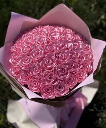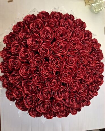 Satınalma üçün zərif dekorativ gül buketləri. Məhsul xüsusiyyətləri: - Material: atlas parça/qaytanla hazırlanmış dekorativ qızılgüllər (canlı gül deyil). - Rənglər: qırmızı, krem, qızılı/karamel ...