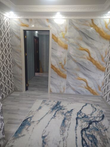Geniş və işıqlı mənzil interyeri - Uzun, geniş dəhliz: LED tavan işıqları, dekorativ naxışlı divar kağızları, laminat döşəmə. Elektrik sayğacı və paylayıcı qutu dəhlizdə yerləşir. - Otaq: Böyük pə...