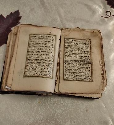 Antik Quran kitabı. Gümüşü qabda yerləşən miniatür ölçülü, antik Quran kitabı, ətrafında ornamental naxışları olan qədimi üslubda səhifələrə malikdir. Kompakt ölçüsü sayəsində daşınması rahatdır. K...