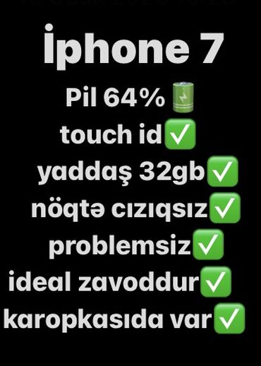 Apple iPhone 7 — qara rəng 🔴sadece pil deyısıb 100 dur🔴 Bırde arkasında Azca xırda cızıqlar var başka ısdemeyıne sozola bilmez 32 GB real alıcıya eforum ederek