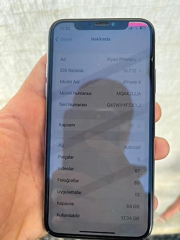 iPhone X 64gb 100pil face id işləyir arginal atapdr üstündə verilir