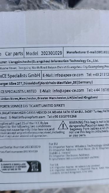 - Qablaşdırma üzərində məlumat: “Car parts – Model 202301029”; istehsalçı/idxalçı məlumatları bəyannamədə qeyd olunub