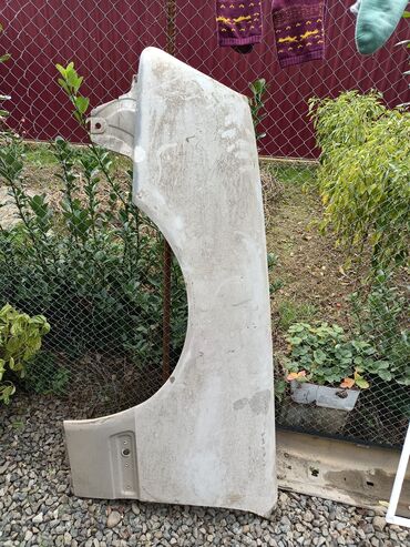 Məhsul: Avtomobil üçün ön sağ qanad (fender), ağ rəng. Xüsusiyyətlər: - Korpus: metal, fabriki forması saxlanılıb - Rəng: ağ (üzərində qara boya/qoruyucu qalıqları görünür) - Tip: ön sağ qanad (tə...