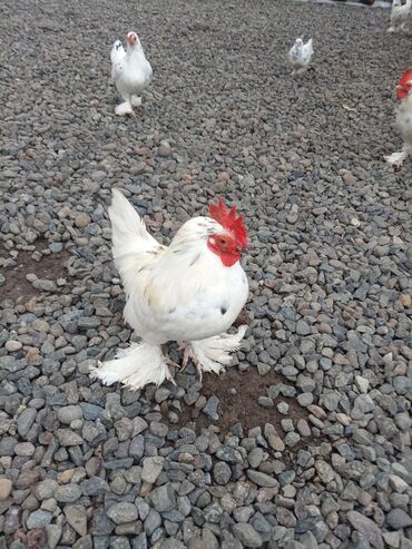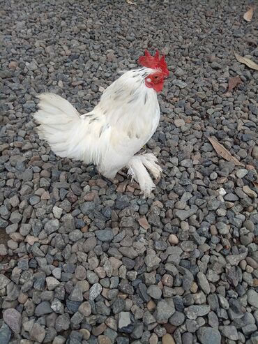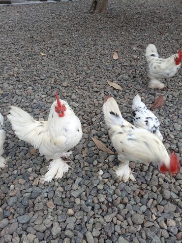 Satılır: Bir ededi.40 manat.cücəlik üçün dekorativ toyuq növü – ağ ləkəli, xallı rəng çalarında xəzəl ayaqlı bantam xoruz və toyuqlar.