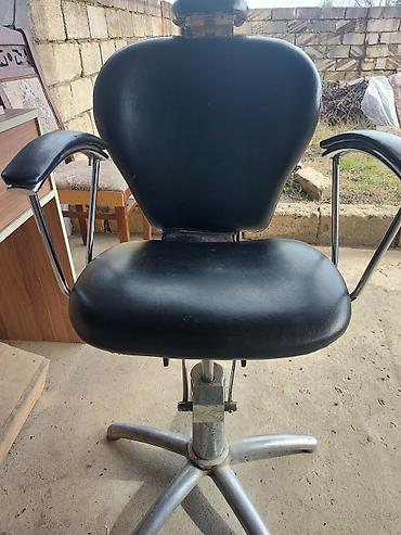 - Bərbər kreslosu – qara dərimsi oturacaq və bel hissəsi, xrom qoltuqaltılar, başaltı, beşayaqlı metal baza. Hidravlik mexanizmli hündürlük tənzimləmə qolu mövcuddur, 360° fırlanır.