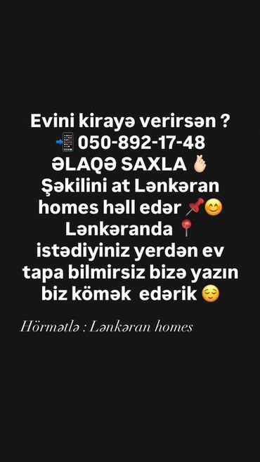 - Lənkəranda mənzilini kirayəyə vermək və ya istədiyiniz ərazidə ev tapmaq üçün peşəkar vasitəçilik xidməti.