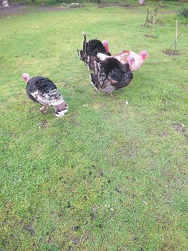 - Şəkillərdə açıq otlaqda saxlanılan neçə baş hinduşka görünür. Qara-ağ xallı və açıq-qəhvəyi rəng tonları var.