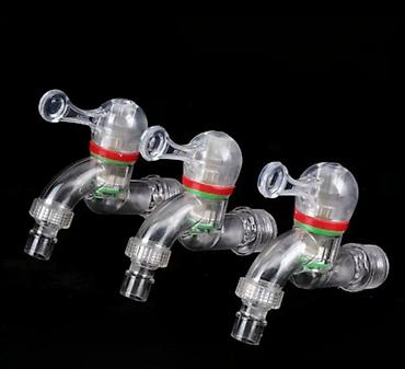 Şəffaf plastik su kranı – filtrli, universal qoşulma