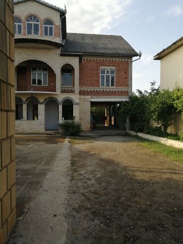 Geniş həyəti olan iki mərtəbəli kərpic villa