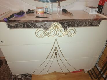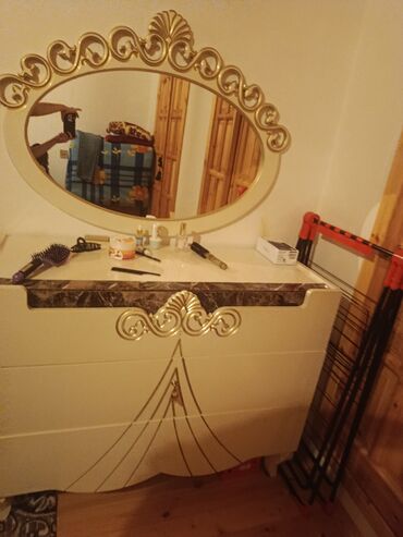 Klassik üslubda makiyaj masası və böyük oval güzgü dəsti.