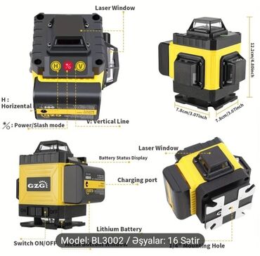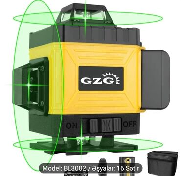 Daxili və xarici bərabərləşdirmə, kafel-döşəmə, tavan/partition xəttləri, elektrik və santex işləri üçün uyğun dəqiq ölçüləmə aləti. Model: BL3002. Əşyalar: 16 Sətir.