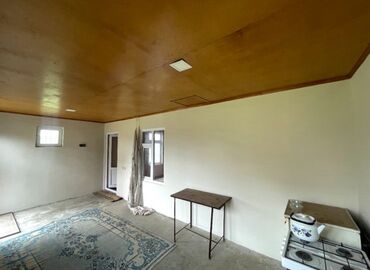 - Taxta tavan örtüyü, laminat tipli döşəmə (zal/yataq), mətbəx-hissədə beton döşəmə