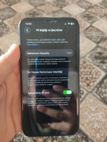 - Ekranda “Pil Sağlığı və Şarj Etmə” bölməsi: Maksimum kapasite 80% (İyileştirilmiş Pil Şarjı aktiv)