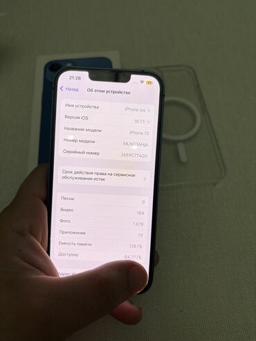 IPhone 13, 128 GB, Pacific Blue, Simsiz şarj, Face ID, Sənədlərlə
