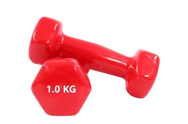 - Dəstlər: 1.0 kq-lıq qırmızı vinil/neyoprən örtüklü dumbbell cütü (altıbucaqlı uclar, yerə qoyulduqda yuvarlanmır). Yüngül güc məşqləri və isinmə üçün uyğundur.
