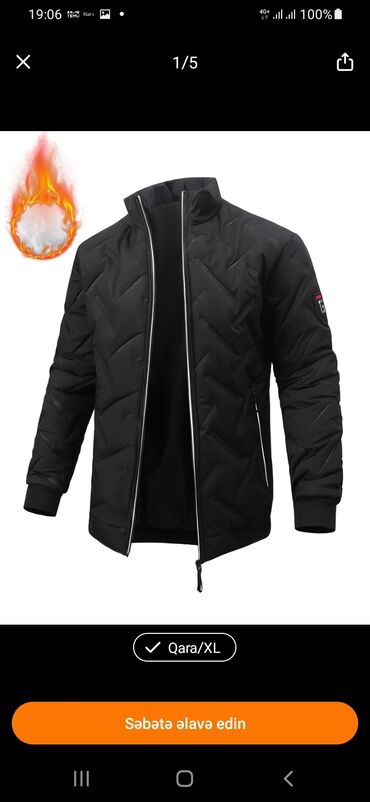 - Material və istilik: Kapitone qatlı, istiliyi yaxşı saxlayan doldurma; küləyə qarşı üst parça. Şəkildəki alov ikonu isti saxlayan dizayna işarədir.
