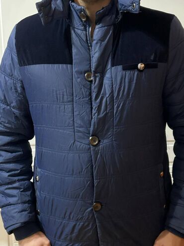 Qışlıq kişi jaketi təzə,geyinilməmiş! - Rəng: tünd göy (navy) - Stil: kapüşonlu, uzun qollu, ön qapaqlı (fermuar + düymə) - Yuxarı hissə: su və küləyə qarşı dayanıqlı parça (softshell tipli görünüş...