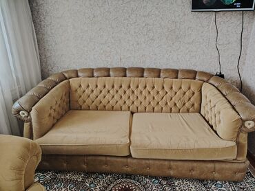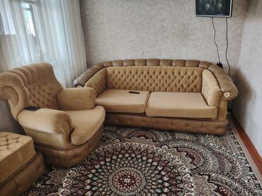 - Dizayn: dərin oturacaqlar, hündür bel hissəsi, qabarıq qol dayaqları, dekorativ güllü düymələr; klassik və eleqant görünüş