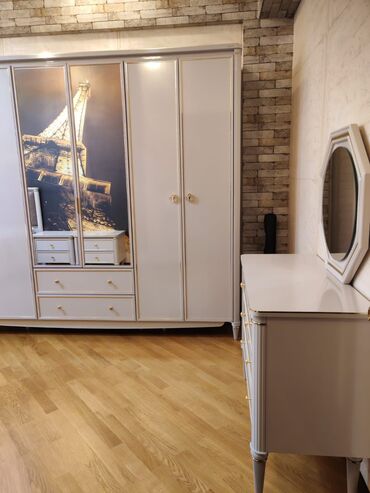 Yataq otağı mebel dəsti Bahar qiymətə alınıb 4 aydır istifadə olunmuyub son qiymətdir Tərkib: - Geniş 6 qapılı dolab: mərkəzdə böyük güzgülü qapılar, qızılı haşiyə və uzun metal tutacaqlar; yan pan...
