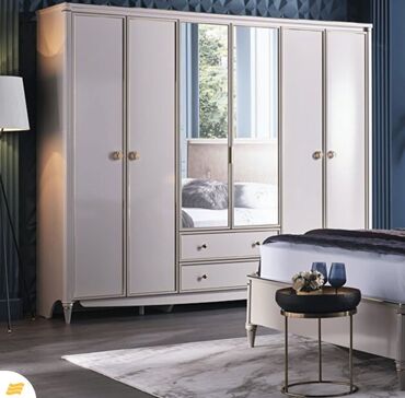 Yataq otağı dəsti – klassik-bej rəng palitrası, qızılı konturlu dekor. Dəst tərkibi: - 2 qapılı güzgülü böyük dolab (ölçü: 200×160×47 sm), içəridə asılqan bölməsi, rəflər və yığcam saxlama sahələr...