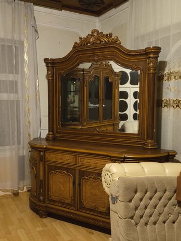 Klassik üslubda taxta bufet-vitrin dəsti - Material: təbii qoz ağacı