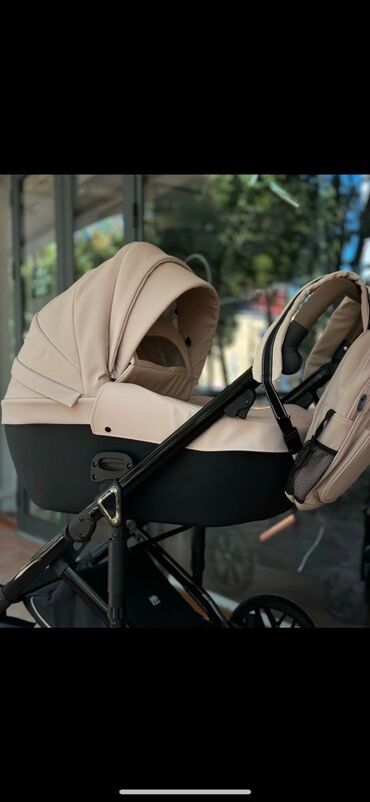 Uşaq arabası – şassis və beşik modulu ilə 1200 azn alınıb 200 satılır. Kolyaska üçün ağcaqanad toru və yağışdan qoruyucu örtük (plyonka) mövcuddur. Xüsusiyyətlər: - Rəng: bej/konyak tonları, qara...
