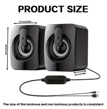 - Ölçülər: hər dinamik təxminən 9 sm (hündürlük) x 6.7 sm (eni) x 6 sm (dərinlik) – az yer tutur.