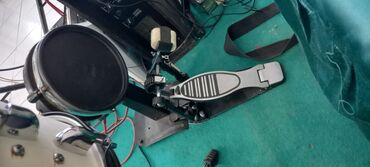 - Kick (bas) sistemi: ayrı bas pedalı və rezin səthli elektron/mesh tipli trigger pad ilə; tənzimlənən beater və zəncirli mexanizm.
