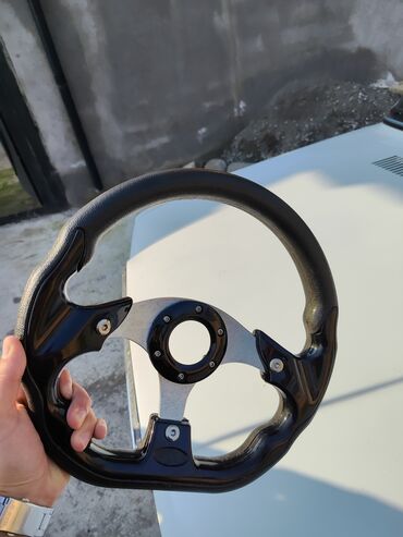 Momo sükan – 3 şüalı idman tipli model - Brend: Momo (mərkəzdə emblemli) - Dizayn: 3 şüa, klassik “rally” üslubu - Rəng: Qara - Material: Metal şüalar, hamar sükan halqası - Mərkəz: Boltlu sökülüb...