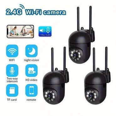 Təhlükəsizlik kamerası – 40 AZN - Xarici/qapalı məkan üçün Wi‑Fi IP kamera - Döner-əriyən başlıq: üfüqi və şaquli istiqamətdə uzaqdan çevirmə/pan-tilt - İki ədəd Wi‑Fi antenası ilə sabit simsiz ba...