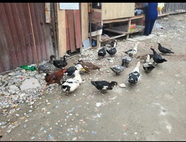 Musk ördəkləri (indi balaları və yetkinlər) - Cins: Musk/Muscovy (Hind ördəyi) - Rənglər: qara-ağ, qəhvəyi-ağ, tam ağ və qarışıq naxışlı lələklər - Qrup halında saxlanılıb, açıq havaya uyğun - Sak...