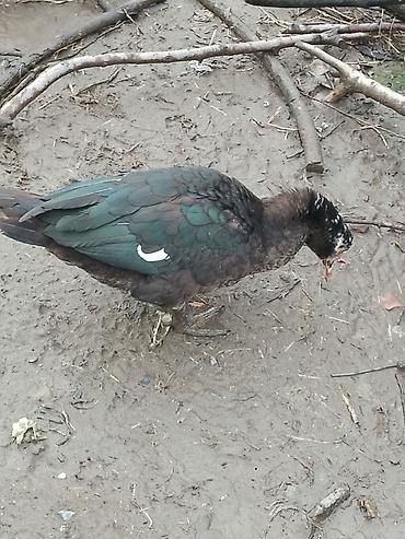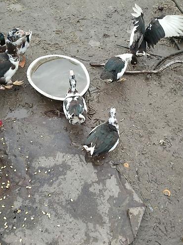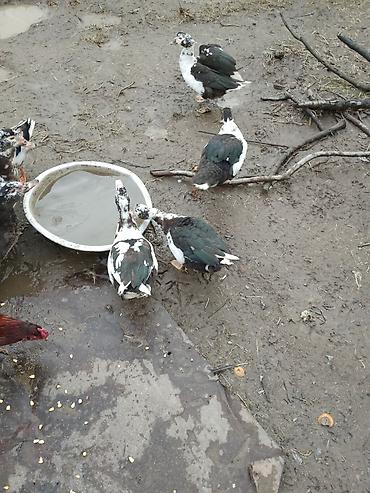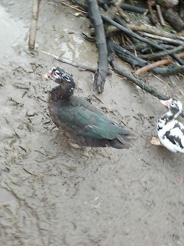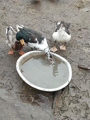 Muscovy (indi ördəyi) və yerli ördək qarışıq rənglərdə – qara-yaşıl parıltılı lələklər, ağ ləkələr və narıncı pəncələr. Şəkillərdə bir neçə baş görünür. Geniş bədən quruluşu, sakit xasiyyət və sürətli çəki artımı ilə tanınan cinsdir. Həm ət, həm yumurta istehsalı, həm də həyət üçün təbii zərərverici nəzarəti (ilbiz, həşərat) üçün uyğundur. Açıq havada saxlanmaya uyğun, soyuğa dözümlüdür; hovuz və ya su qabı ilə rahat bəslənir. Taxıl qarışığı, yaşıl yem və mətbəx qalıqları ilə asan qidalanma. Ailəyə və ya təsərrüfata uyğun dayanıqlı quşlar axtaranlar üçün yaxşı seçimdir.