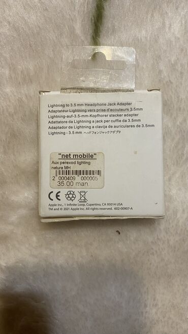 Ipon nauşniki üçün perexodnik. Originaldır. İstifadə olunmayıb. Lightning to 3.5 mm.