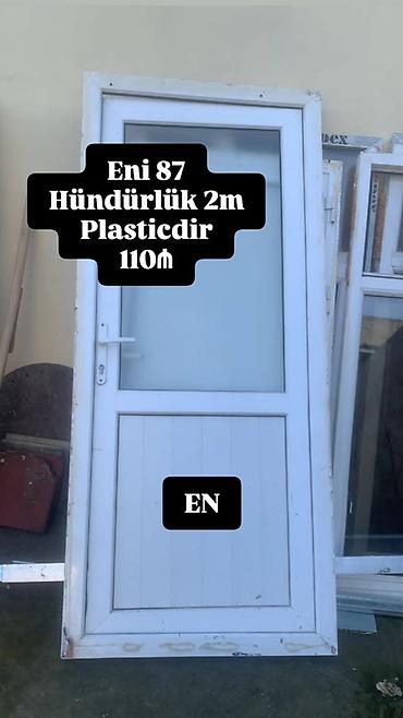 - Plastik qapı: eni 87 sm, hündürlüyü 2 m. Üzərində “110₼” qeyd edilib.
