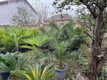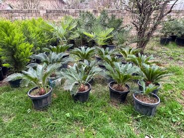 - Çuxur qablarda yetişdirilmiş müxtəlif növ palma və tropik görünüşlü bitkilər