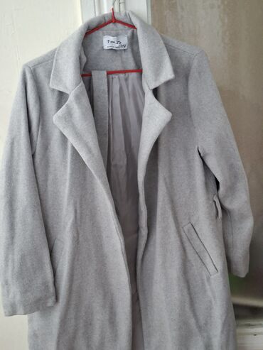 Flover qadın palto – ölçü 38 - Rəng: açıq boz - Uzun kəsim, dizaltı - İkicərgə düyməli ön hissə (4 ədəd qara düymə) - Geniş, kəskin döşlü klassik yaxalıq - İki yan flepli cib - Daxili qara astar - ...