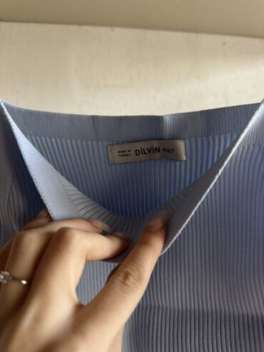 Mavi rəngdə zərif qadın topu - Model: nazik askılı, “camisole” tipli - Yaxa: V-kəsim, incə krujeva (ağappaq deyil, eyni tonda mavi krujeva bəzək) - Material: hamar, axıcı parça; krujeva detallarla ...