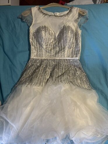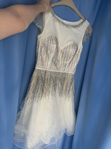 Qısa ağ qaşlı kokteyl/şənlik paltarı