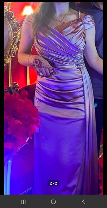 Pulsuz çatdırılmaZərif gecə/libas – atlas parça, açıq bənövşəyi-şampan tonlarında.