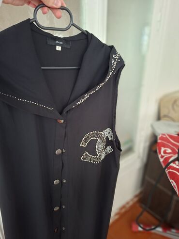 Qısa şal/bolero – qara rəng - Model: qısa bolero-stil üst geyimi - Rəng: qara - Material görünüşü: məxməri/şenilli effekti olan yumşaq parça - Qol: 3/4 uzunluqda geniş qollar - Yaxa: qatlana bilən...