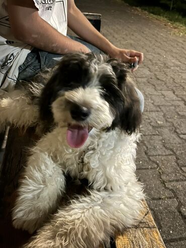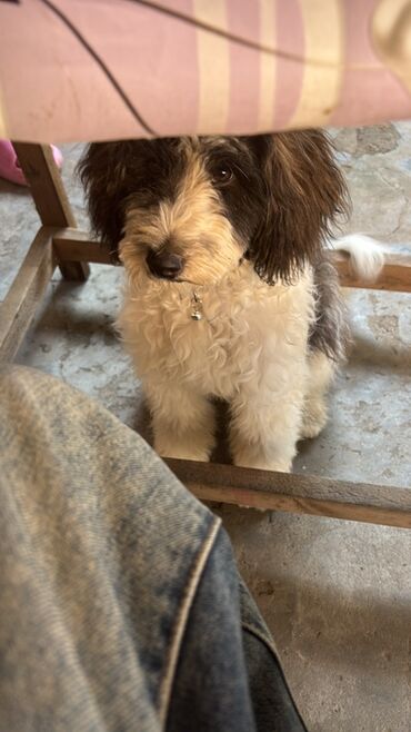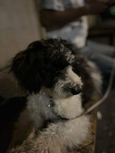 Şirin tüklü it balası – qara-ağ rəngli, qıvırcıq tüklü, orta ölçülü.