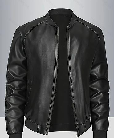 Qara kişi dəri bomber gödəkçə - Model: minimal dizaynlı, fermuarlı