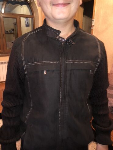 Ön hissəsi parçadan, qolları isə hörgüdən hazırlanmış qara rəngli uşaq kurtkası. Kurtka dik yaxalıdır və ön tərəfində tam uzunluqda fermuar bağlanır. Hər iki tərəfdə kiçik cibləri var. Qollarda dirsək nahiyəsində dekorativ tikişlər mövcuddur. Rahat və gündəlik istifadə üçün uyğundur.