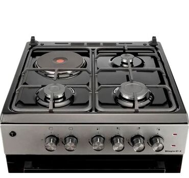 - 4 gözlü üst panel: 3 qaz ocağı + 1 elektrikli disk (tez isidən). Müxtəlif ölçülü brülörlər gündəlik bişirmə üçün uyğundur.